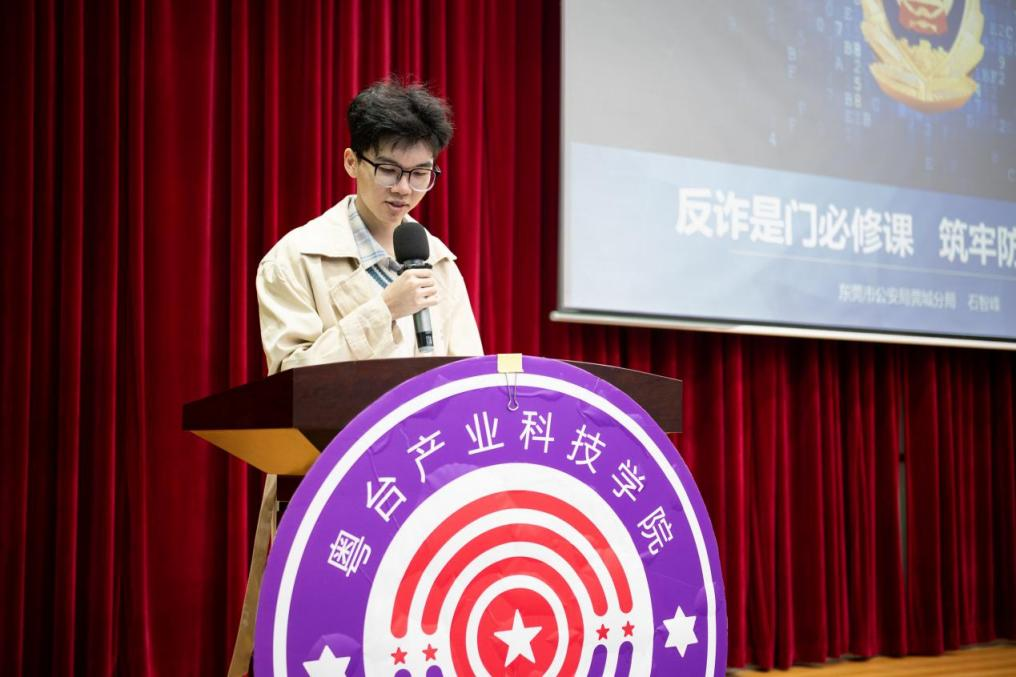 2025年11月3日晚,莞城校区学术报告厅内掌声雷动,由东莞市莞城公安局与粤台产业科技性爱视频联合举办的防诈骗教育宣传讲座在此隆重举行。活动现场同学们聆听了这场贴近生活、内容翔实的反诈知识讲座。