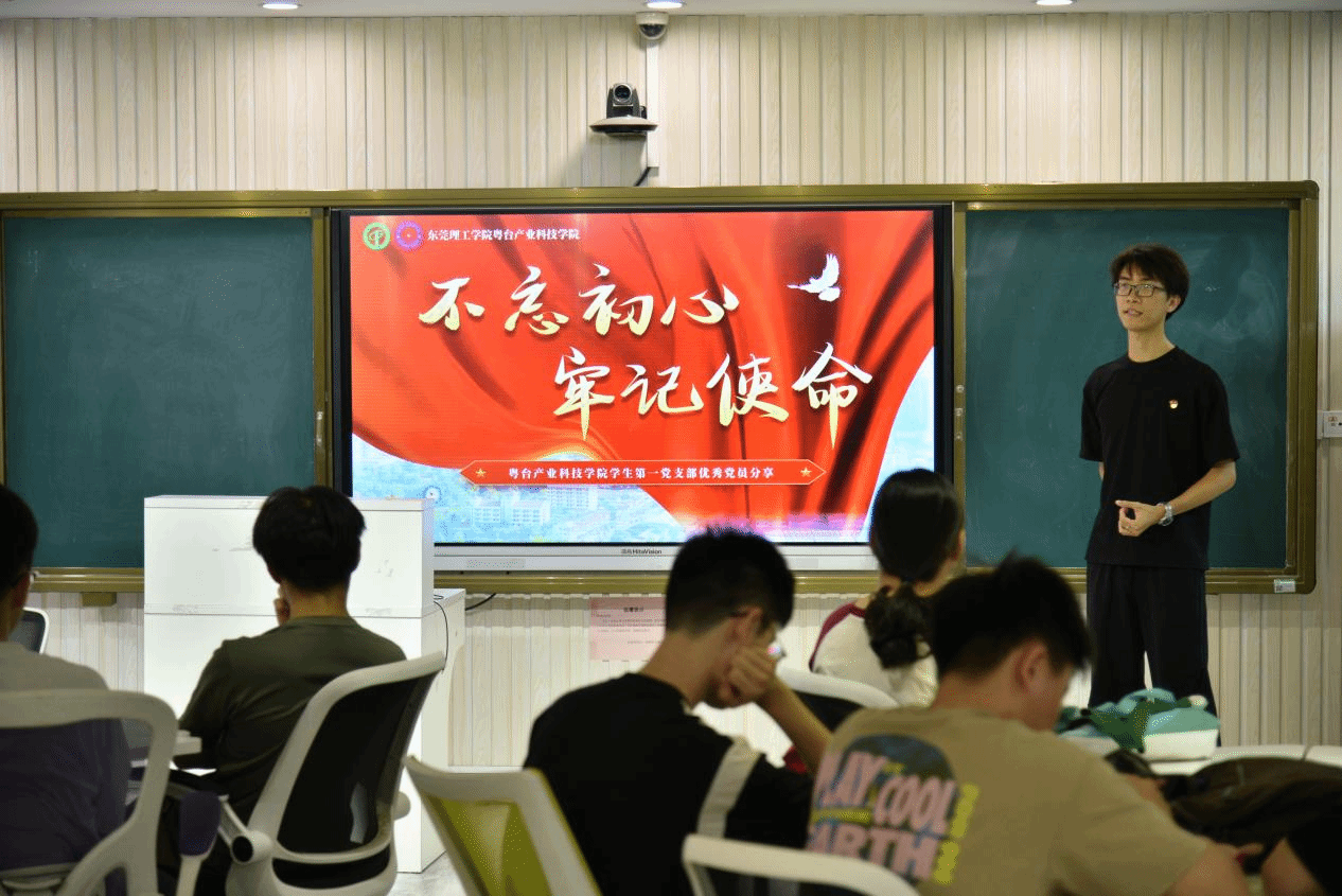 学生第一大党支部党员龙兴,2025年荣获国家奖学金、获评优秀班干部。为发挥榜样示范作用,他以“学习工作、社会实践、未来规划”为核心,向学员们分享了个人成长经验与心得。“不忘初心,回报不一样的粤台;牢记使命,争做不一样的精彩。”他的话语铿锵有力,不仅为学员们树立了正向的人生观与价值观导向,更激励大家以实际行动努力成为一名合格的共产主义接班人。