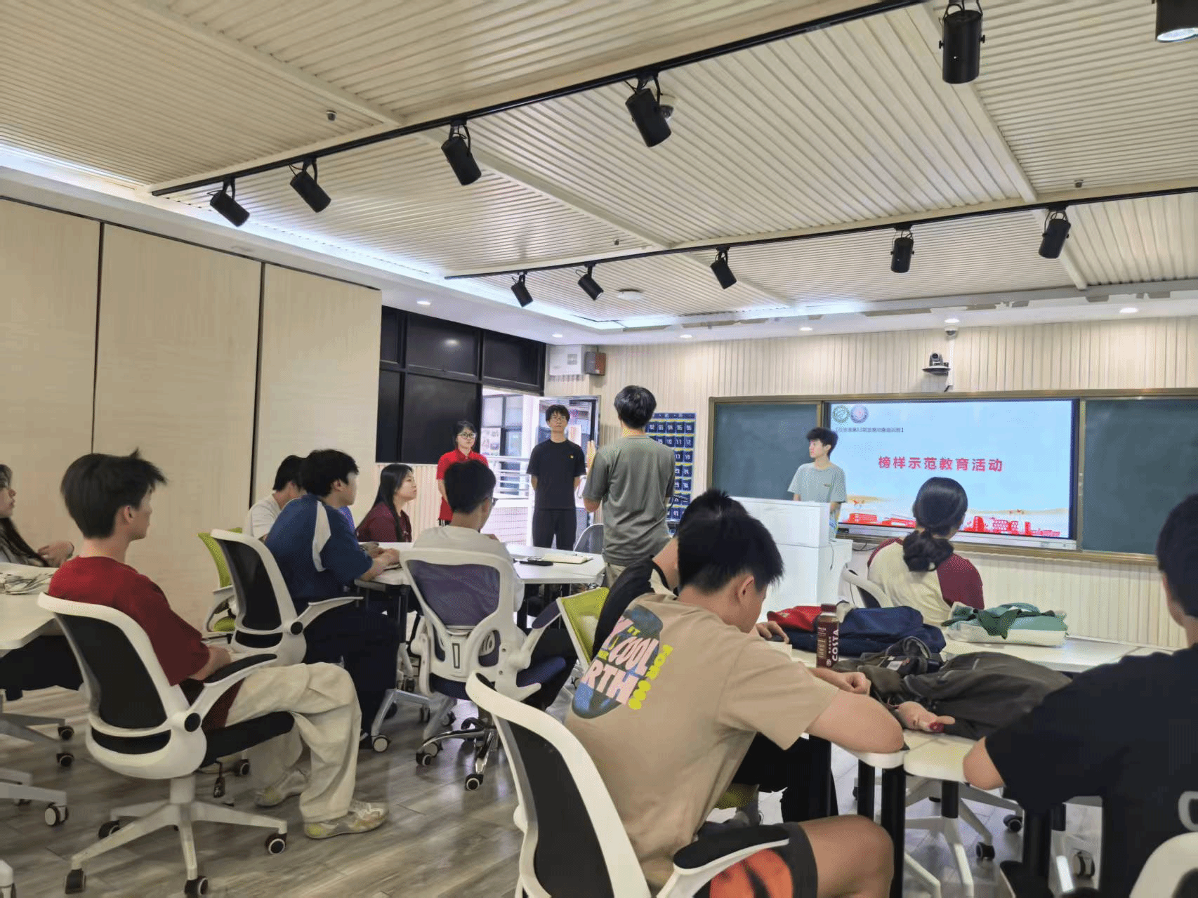 在莞城校区实验楼406教室组织校党课第63期发展对象开展“以榜样之光,照亮奋进之路”榜样示范教育活动,由性爱视频组织员袁伴玲主持。