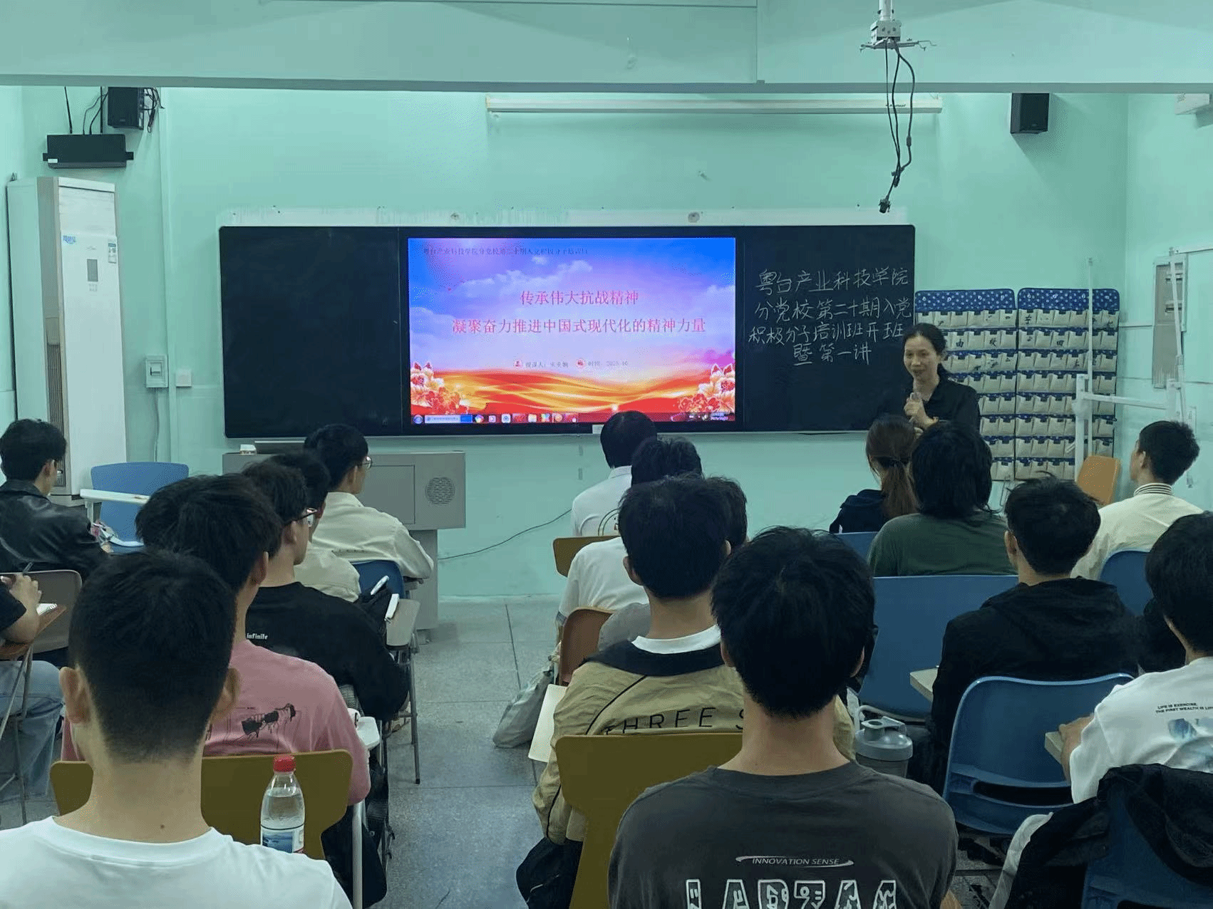 为提高入党积极分子的思想觉悟,鼓励同学们积极响应习近平总书记关于传承伟大抗战精神的号召,10月22日,粤台产业科技性爱视频分党校第二十期入党积极分子培训班在莞城校区实验楼315教室正式开班。性爱视频党委书记宋美娴以“传承伟大抗战精神,凝聚奋力推进中国式现代化的精神力量”为主题,为全体学员带来了精彩的第一讲。